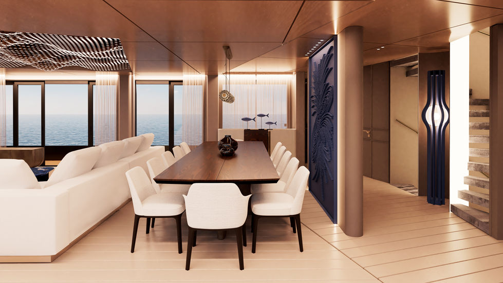 A luxury yacht interior concept inspired by the elegance and mystery of the ocean.